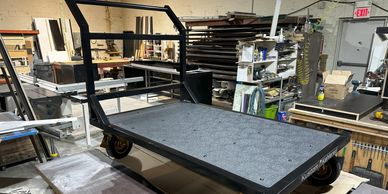 Like our speaker carts, we will design these to your specifications. All carts are powder coated and have swivel locking wheels on the handle end.